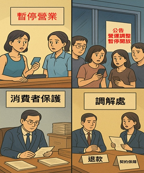 此次停業事件,凸顯產業預付費用存在之高風險問題。幸而法律有配套措施,消費者於合約中也需留意,是否有清楚揭示履約保證的方式,或載明未使用課程退費之計算等等,若能使用第三方支付平台或信用卡扣款,比起其他付款方式,較能保障相關退款機制。
