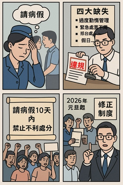 雖然目前勞動基準法本身未明訂「病假請假不得受考績懲罰」,但勞動部透過「勞工請假規則」進行修法,於明年上路,以補足現行制度保護不足。