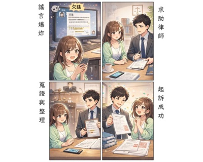 被害人第一次走進事務所時,講的不是「要告誰」,而是「我不知道還能怎麼活在這個圈子裡」。 她說,事情的開端看似很小——有人在工作圈子裡口耳相傳:「她欠錢」。但真正可怕的,是謠言被丟進了網路群組後,開始被複製、轉傳、二次創作,像雪球一樣越滾越大。