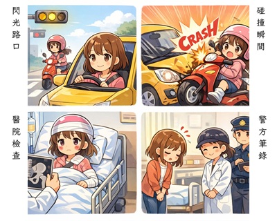 碰撞就在那一秒發生。陳小姐瞬間倒地,受有蜘蛛網膜下出血、腦水腫、骨盆及薦椎粉碎性骨折等重傷,治療後甚至留下了「垂足」的後遺症,右下肢神經受損。