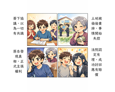 土地被擅自變賣,承諾化為烏有 在未取得候先生同意的情況下,母親竟逕自將該筆土地以總價2400餘萬元出售給第三人賴先生。當候先生發現時,原本依協議屬於他的「五分之一土地產權」,已經無法再移轉到他名下 。