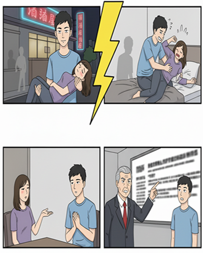 與強制性交最大不同是,乘機性交的行為人並未主動施加暴力或威脅,而是利用被害人已經處於**「酒醉、泥醉、昏睡、生病、心神喪失(如嚴重智力或精神障礙)」等無力或無法認知抗拒的狀態下進行性交。常見的「撿屍」行為,多半會落入此範疇。其法定刑為一年以上七年以下有期徒刑**,刑度較強制性交為輕。