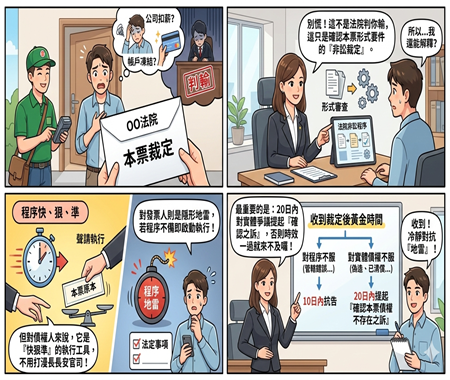 但也正因為這項程序具備「快、狠、準」的特性,很多人容易產生一個致命誤解:法院准了本票裁定,不等於法院已經完整審完雙方債權債務爭議 。