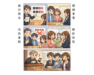 (1)銀行提告的法律基礎:民法第244條第1項 民法第244條第1項的撤銷權,關鍵不在「登記原因寫贈與」四個字,而在於該無償行為是否實質減少債務人責任財產、使債權共同擔保縮水;也就是法院所稱是否「有害及債權」。