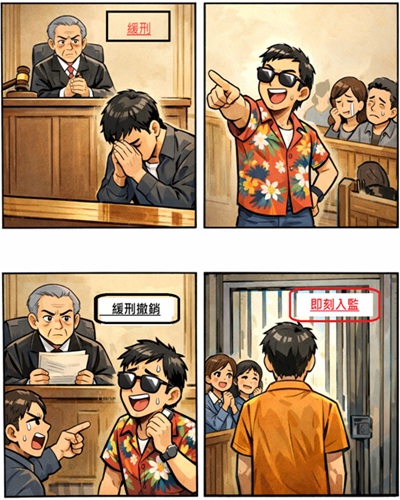 拿到緩刑後,並非領了「免死金牌」。如果受刑人表現不佳,法院隨時可以收回。