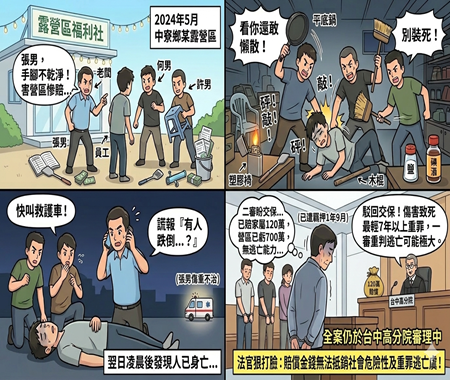 這是一起令人髮指的職場凌虐命案。南投縣中寮鄉某露營區的謝姓老闆,因不滿員工工作表現,竟與另外三名員工聯手動用「私刑」,在短短數小時內將被害人活活虐死。儘管謝男事後提出高額賠償試圖爭取交保,但仍遭法官嚴詞駁回,南投地院一審判決出爐,依傷害致死罪判謝姓老闆徒刑14年6月,何男等3人則被判14年到11年6月不等徒刑,目前全案仍於台中高分院審理中,謝男稱自己露營區已因此虧700萬「血本無歸」,又盡全力賠償死者家屬120萬,請求交保,但仍遭法官駁回。