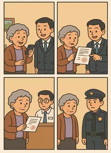 南台灣一名61歲蔡姓婦人,因朋友介紹而誤信所謂「生前米契約計畫」,認為只要配合捐款做公益,不僅每月可收到12公斤白米,未來過世後還會有師兄師姐協助誦經辦喪禮。這類計畫以宗教儀式與善行包裝,讓人誤以為是正當的公益活動,進而放下戒心。婦人甚至相信對方出示的「警政署公文」,以為帳戶是合法、安全的企業帳號,遂前往銀行準備匯款新台幣26萬8千元。幸好銀行櫃員認為事有蹊蹺,即時通報員警,員警馬上識破公文是偽造的,婦人差點就匯款了!