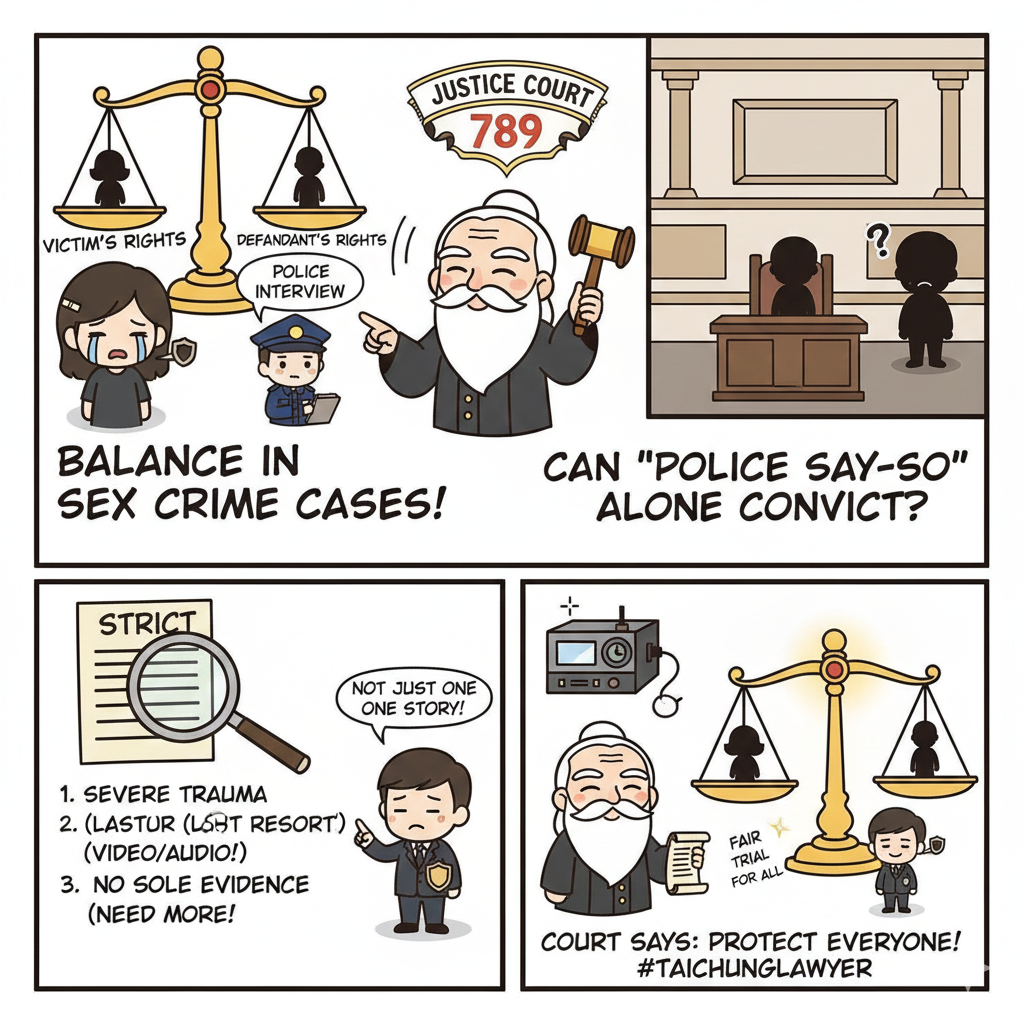惟司法院釋字789號解釋確立了一個核心原則:性侵害被害人的警詢陳述,在符合特定嚴格條件下,可以例外作為證據;但不能成為判決被告有罪的「唯一」或「主要」證據。 這標誌著我國在保障性侵害被害人權益與確保刑事被告「對質詰問權」(訴訟權核心)之間,取得了重大的平衡。