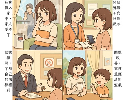 這些措施如果仍無法改善,更能凸顯鄰居吸菸行為對你的影響確實「超過一般社會容忍程度」,有利於訴訟主張。