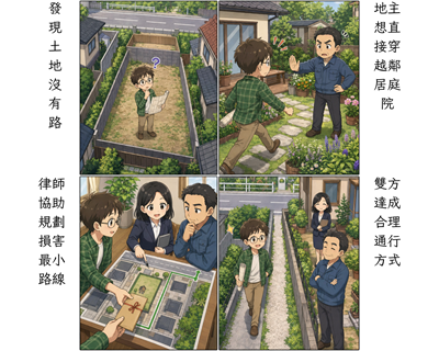 在不動產交易與繼承實務中,最棘手的問題往往不是價格,而是買到了「看得到、用不到」的土地。明明持有合法的土地所有權狀,卻發現四周都被他人的私人土地包圍,完全沒有聯外道路可以進出;或者現有的通道過於狹窄危險,根本無法正常使用。